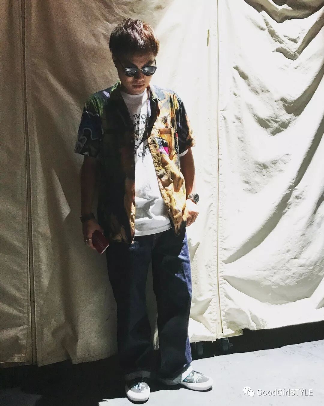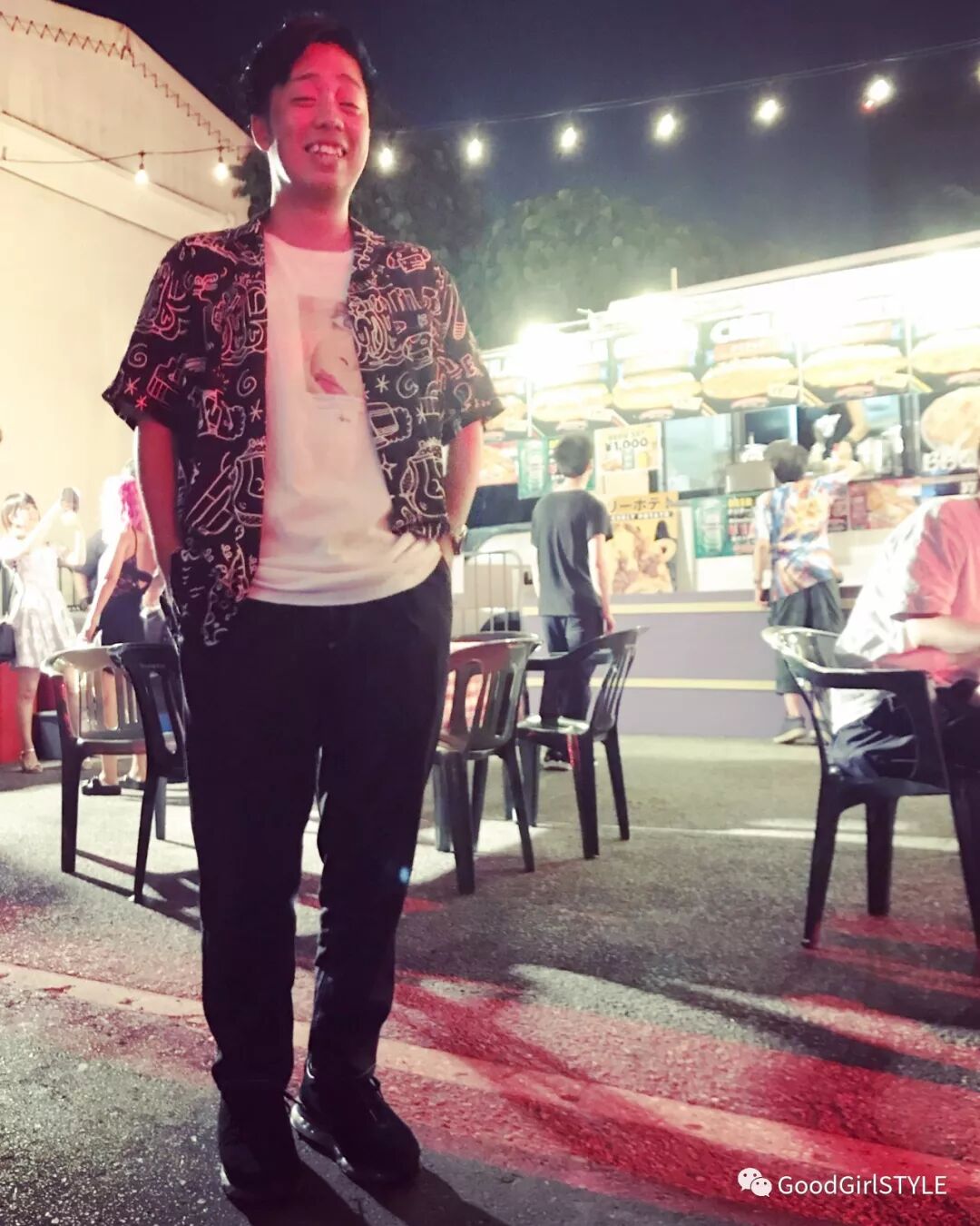 这位就是当晚我们去应援的主角,DJ charu。贴身穿的T恤是他和学设计出身的女友合作设计完成的,简直甜齁。外搭的aloha衬衫今年早春起就热度不减,本来怀有抗拒的光姐发现,搭配clean的牛仔单品穿,真的也可以很可爱。