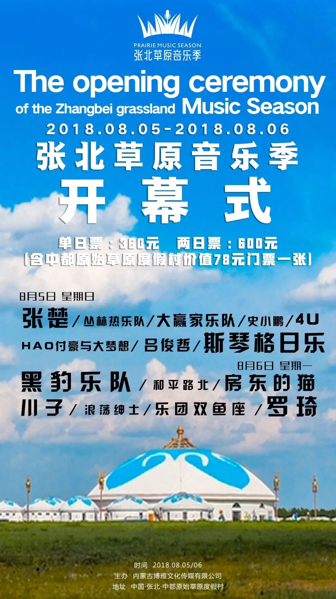 2018张北草原音乐季节的转变,扑面而来的是大家对今年演出阵容配置的期待。昨天下午,2018年张北草原音乐节演出阵容和票价曝光,具体如下:
