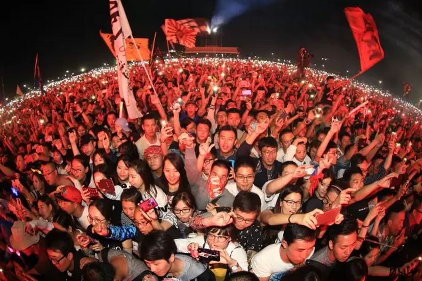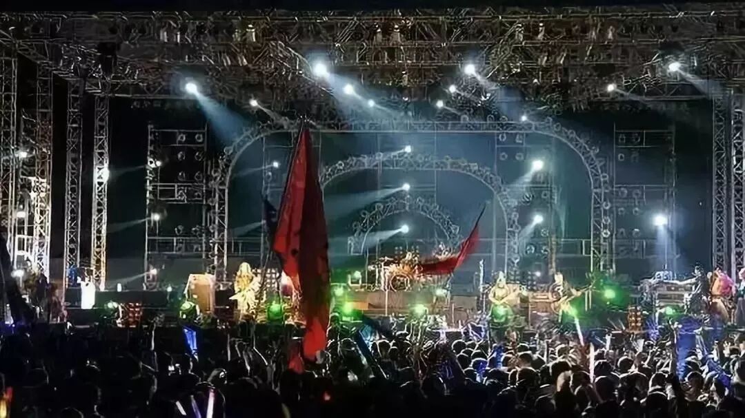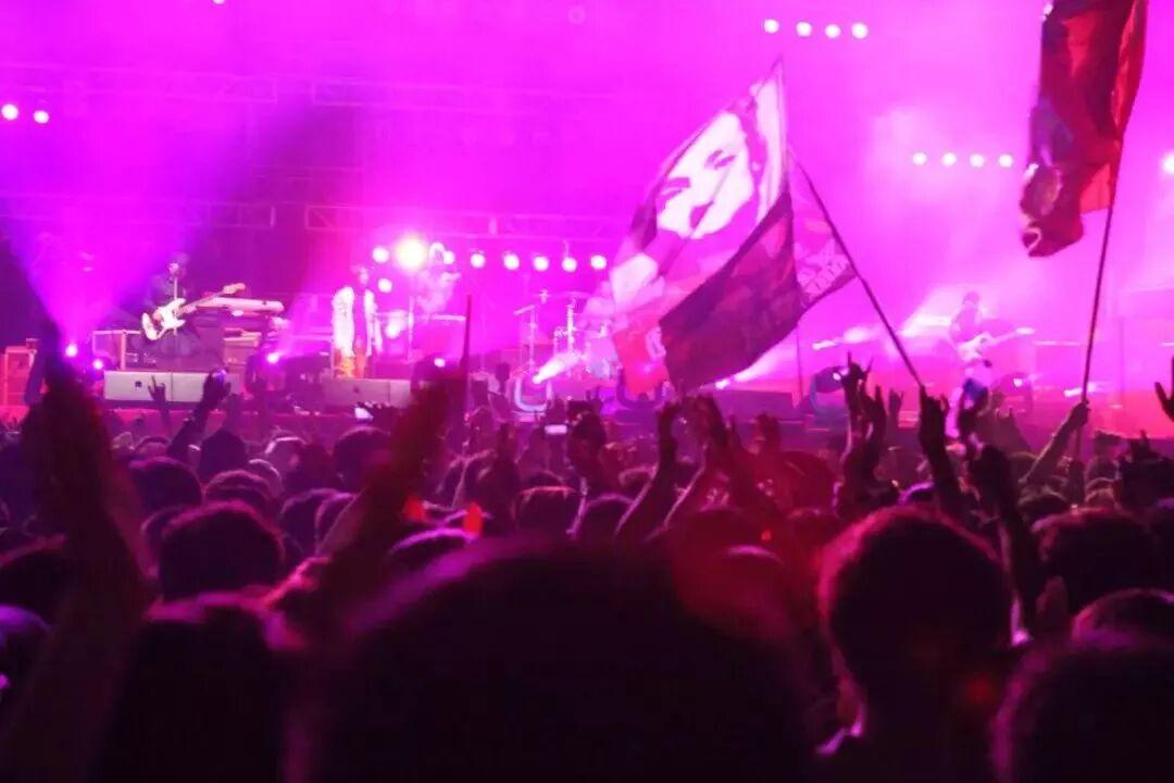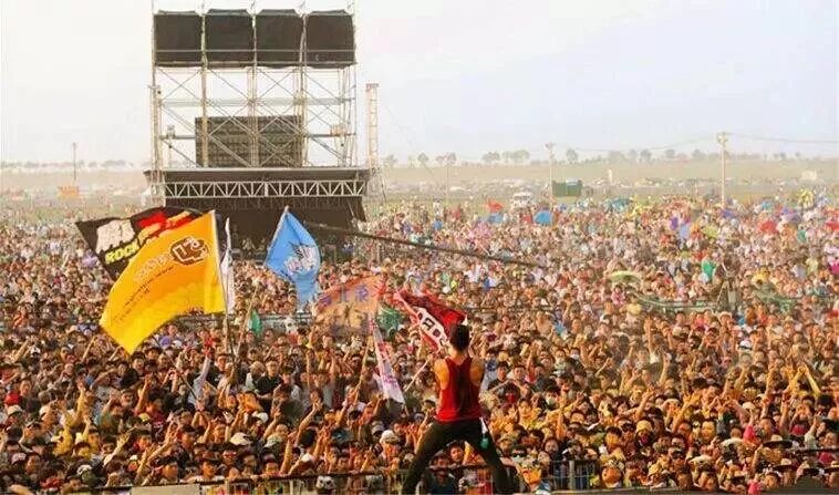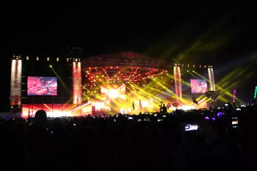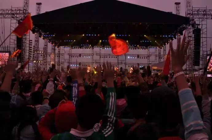 “现场歌迷的疯狂,舞台正中的旗霸”