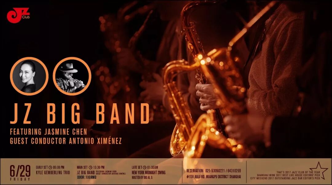 成立于2006年的JZ Big Band是中国顶级爵士大乐队,集合了中国国内外一流爵士乐手。乐队曾与Dee Dee Bridgewater、崔健, 李泉, 顺子,赵可…等同台合作, 受邀参演:丹麦哥本哈根爵士音乐节、历届爵士上海音乐节、上海国际电影节、爵士厦门音乐节等,以及上海世博会倒计时的演出。同时JZ Big Band曾作为荷兰歌后Laura Fygi中国巡演指定乐队,多次随Laura Fygi赴北京、广州、深圳、香港等地演出,受到中外观众的关注和喜爱。 从经典的摇摆乐、节奏感强烈的放克到热情的拉丁音乐,JZ Big Band将爵士的醇厚等各种风味更好地在展现乐迷面前。乐队融合而丰富的音乐风格,瞬间带我们回到爵士的黄金时代,让我们在最纯粹的演奏中陶醉。