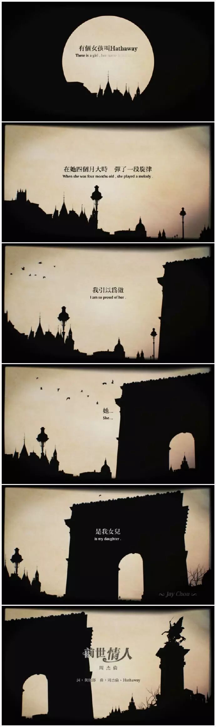 这是一支父爱满满的MV:周董与女儿共同创作的MV《前世情人》倾情首映!歌词中的“有个女孩叫Hathaway,在她四个月大时弹了一段旋律,我引以为傲,她...是我女儿”,无不透露出杰伦初为人父的心路历程,把女儿比作前世情人,一起来感受!