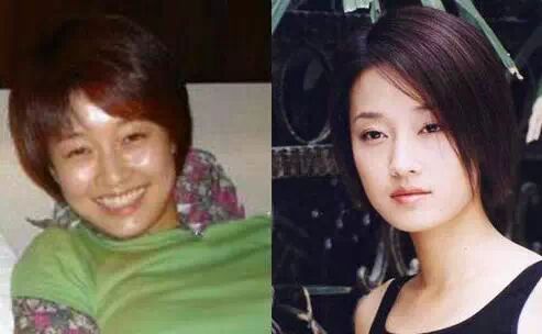 李小璐最大的特点就是额头不能露,卸妆前是个雪白雪白的瓷娃娃,卸妆后相貌平平。