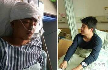 以上图为:当时受伤时的任代晖(左)、王刚(右)