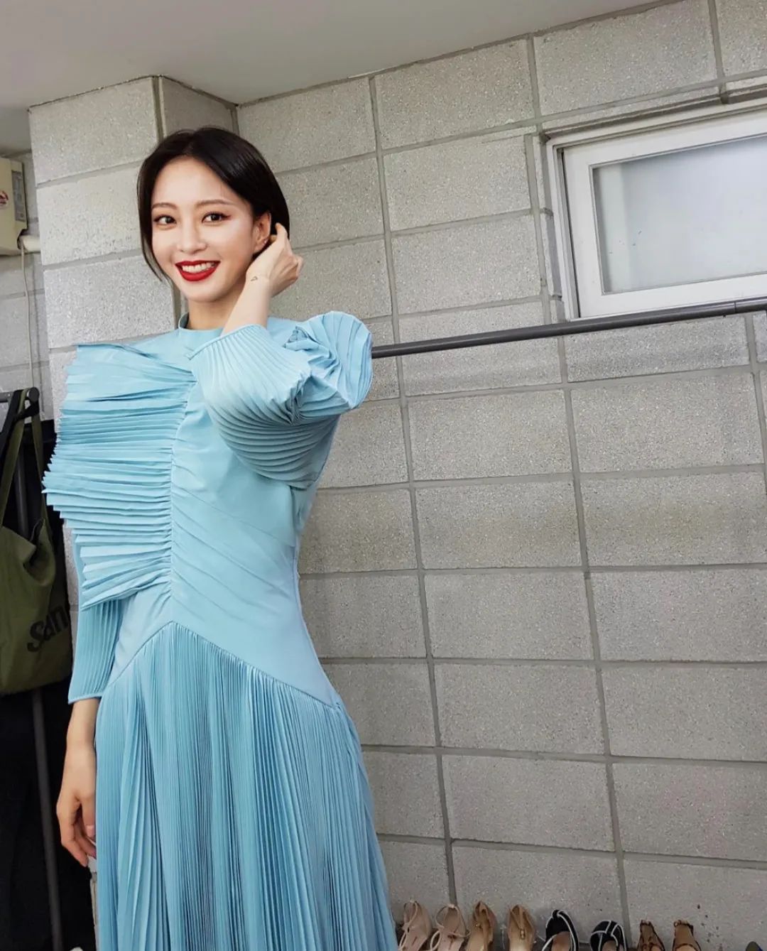 拥有纤细腰身的同时,韩艺瑟姐姐的大长腿也可以上个保险了,修身的黑色垫肩裙搭配高跟鞋,一米八大长腿即视感。