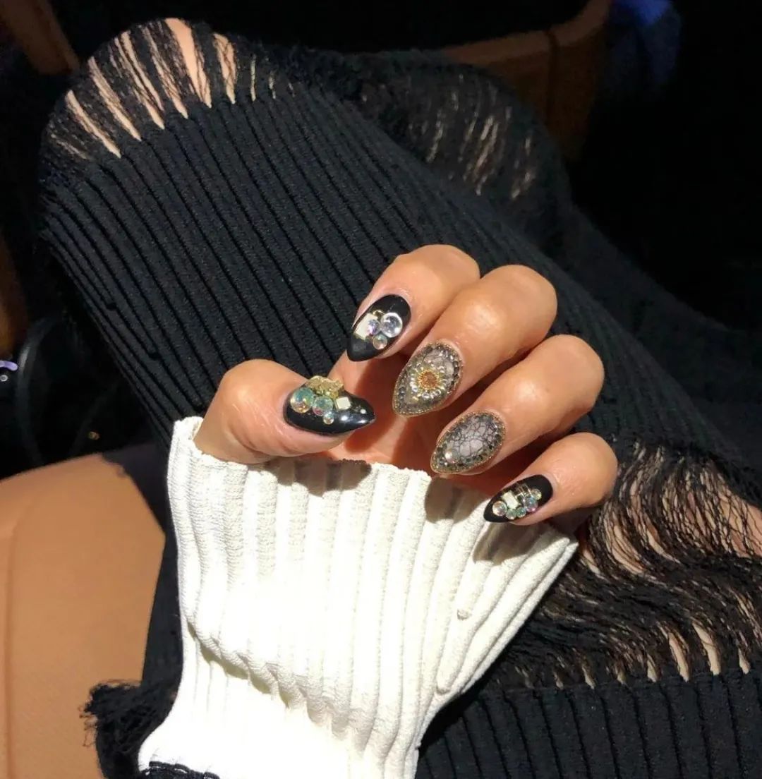 还有这套哥特式暗黑风造型,朋克风鼻钉她也能完美hold住,性感又帅气,自带混血感。