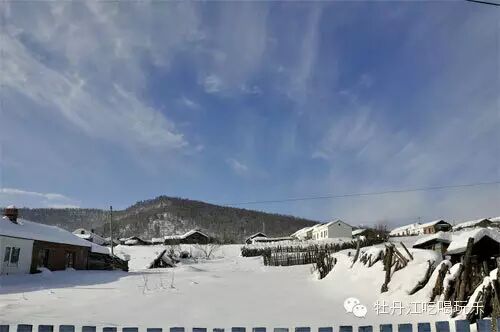 冬季白雪皑皑,简单的屋舍,木栅栏围成的小院,粮屯柴堆,晾晒的玉米。。。