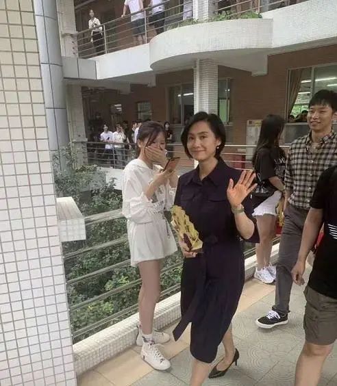 9月29号网上曝光了一组朱茵拍戏的鹿头照,当天的朱茵状态看上去非常好,面对学生们的围观也依旧表现得十分大气,短发造型相比较与长发造型更加的利落干练,很有教导主任的范,身上则选择穿了一件黑色的衬衣连衣裙,款式上相较而言比较保守,领口微微敞开,配合上小翻领的设计,很有职场感。