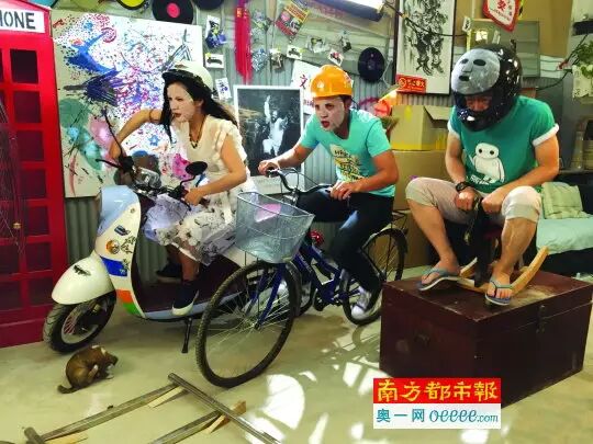 后来南都记者了解到,它的作用不仅仅是上下班的交通工具,也是片中主角们跑腿的座驾——原来,片中有一幕是范逸臣、付曼、孟鹏3个淘宝合伙人被债主追赶,他们狼狈地挤上这辆小摩托逃跑……整个画面相当有喜感。