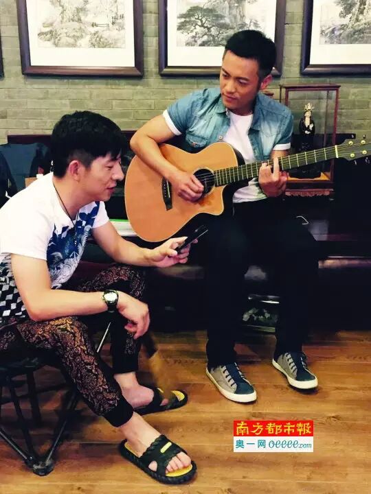 ↑↑拍片间隙,范逸臣玩起音乐。