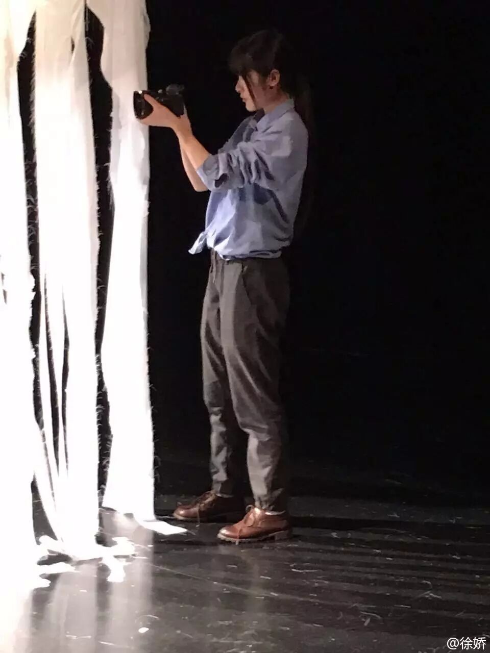 ▲认真完成舞台布景和拍照的徐娇