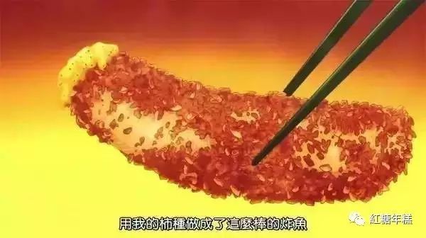 《食戟之灵》里,幸平创真和小惠抢来评审老师的柿子种,捣碎用面包糠裹着炸鲑鱼,最终和塔克米兄弟打成平手。