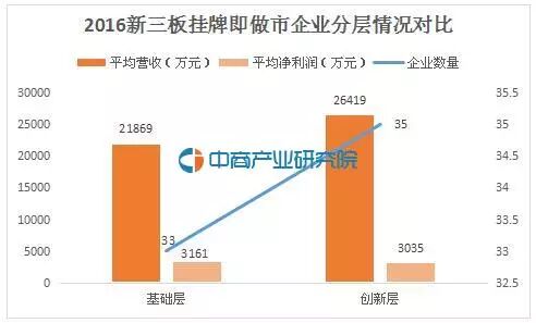 68只股有35家进入创新层,平均营收达2.64亿元,平均净利润为3035万元。虽然基础层企业只有33家,但平均营收和净利润与创新层企业不相上下。