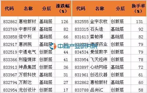 2016新三板挂牌即做市企业涨跌幅与换手率TOP10