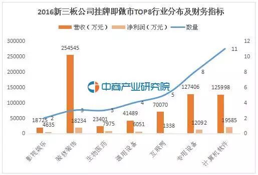 2016新三板公司挂牌即做市TOP8行业分布及财务指标
