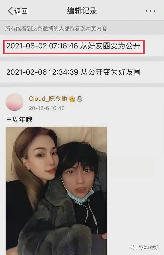 另外,在大花妞8月1日前后发现男友出轨后,她故意把陈令韬的隐藏微博解锁,露出了陈令韬和她去年三周年的微博,意在敲打孟美岐,让对方知道自己的存在。但这并没有对这段情绪越来越高涨的地下情起到降温作用。