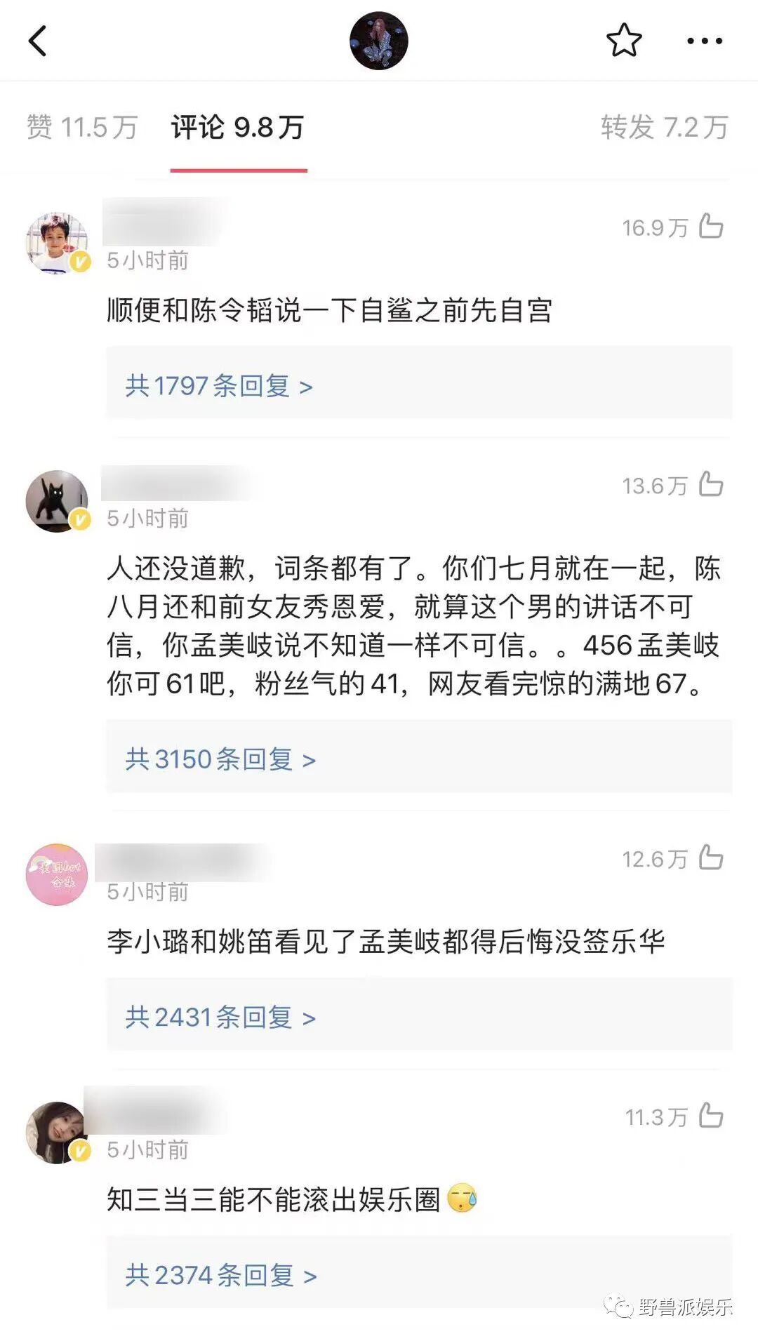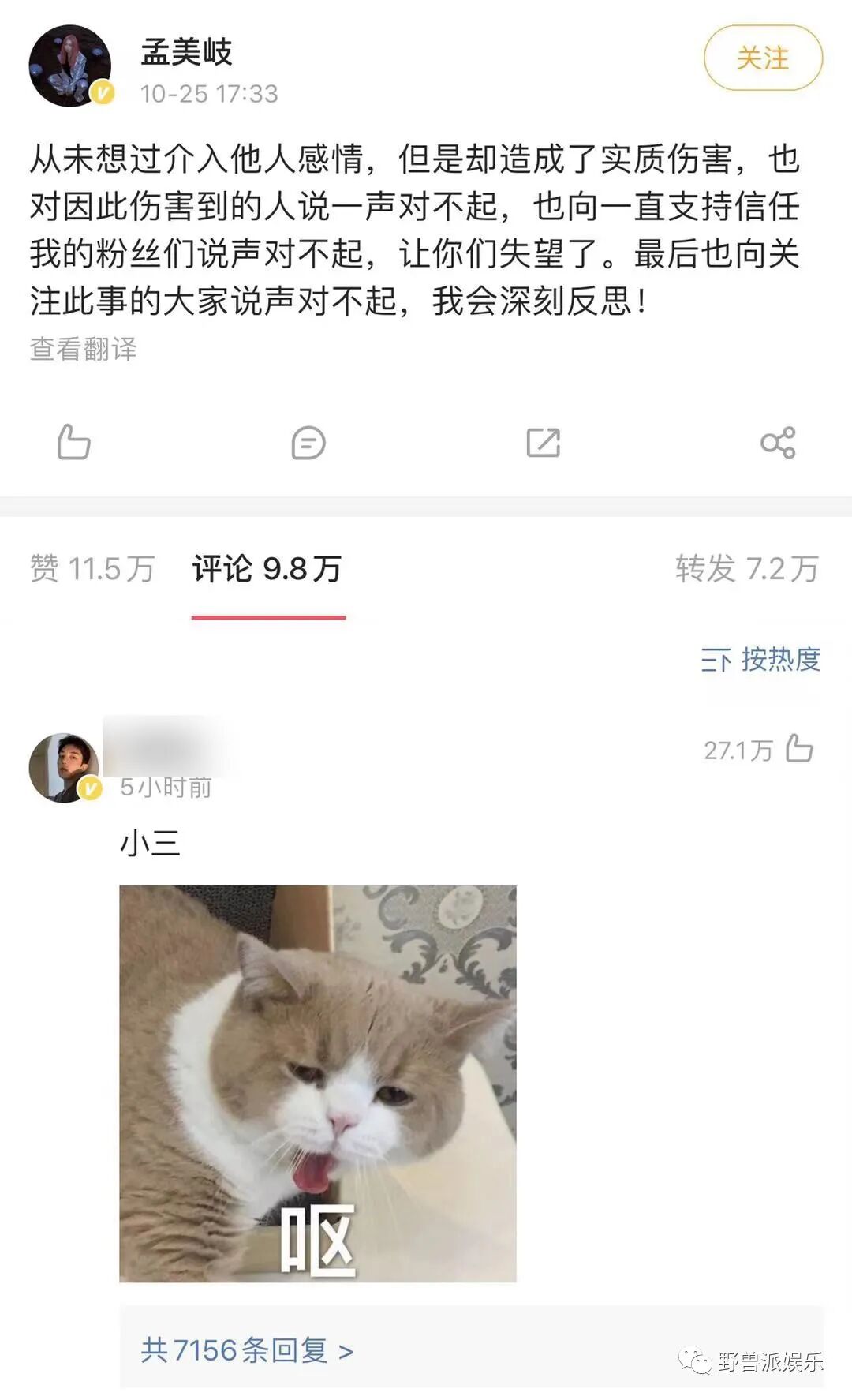 事件发酵了一天,孟美岐如今陷于很尴尬的境地,她和身后的公司当然不想被扣上“小三”的帽子,毕竟对于一个女明星来说这就是灭顶之灾。目前来说支持她和反对她的人都处在各说各话的阶段,关系孟美岐生死的影视制作方和品牌方目前还处在观望的阶段。