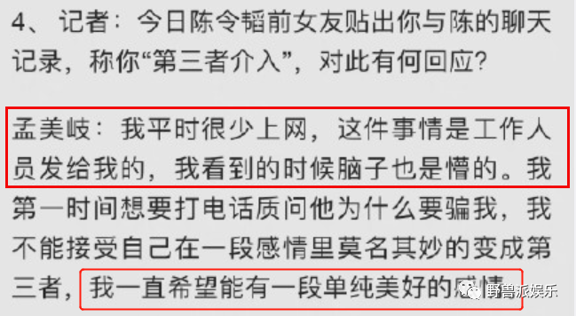 可是很多网友对这个解释并不买单,他们更倾向于相信孟美岐是知情的,一是陈令韬自己的话已经锤了孟美岐,另外从孟美岐今天的说法看也是有漏洞。