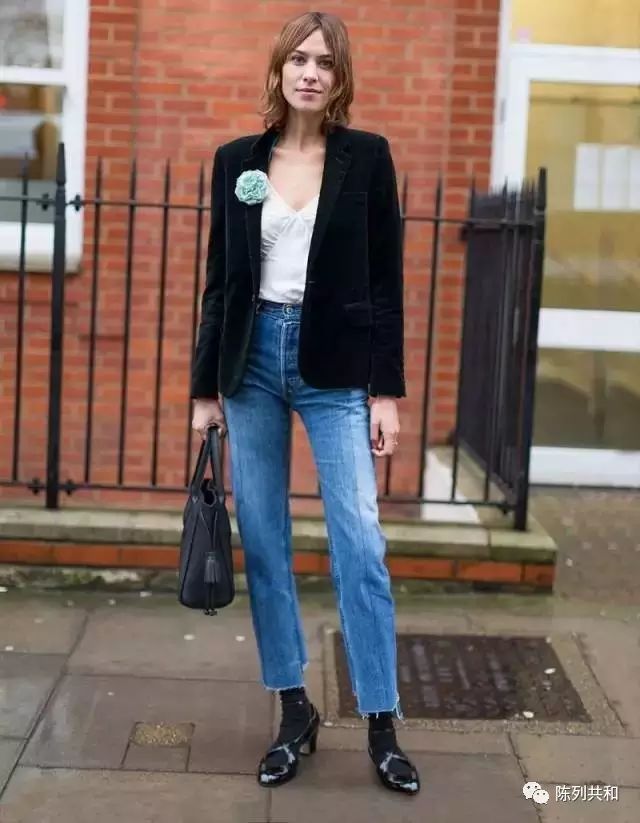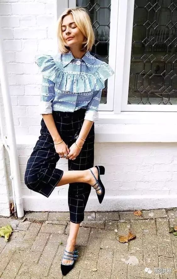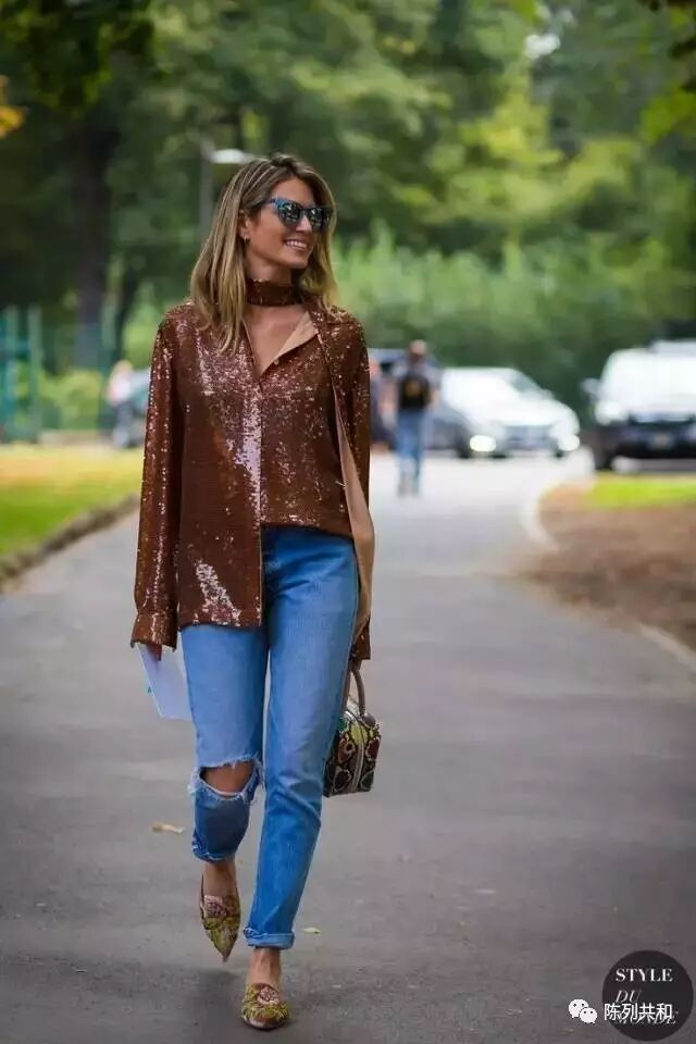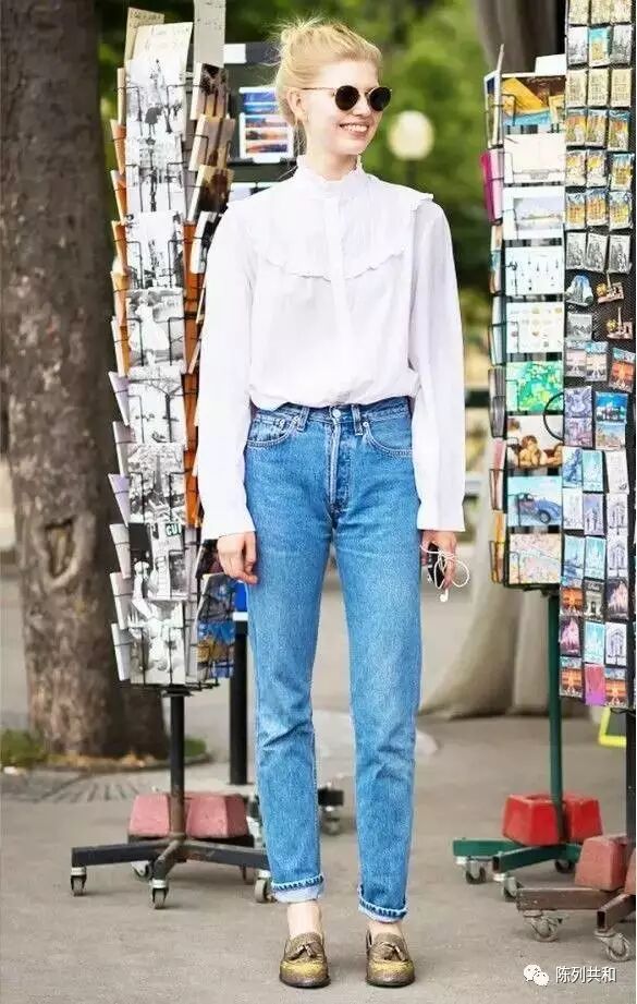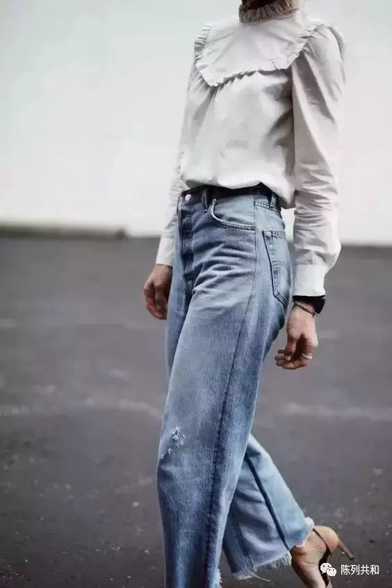 ▼紧身牛仔裤已经out了,今年最流行的是各种宽大复古牛仔裤,跟荷叶边衬衫搭更配。