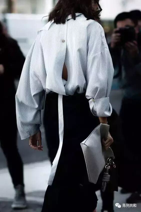 ▼oversize袖子的衬衫去年就开始流行,今年热度还在延续。