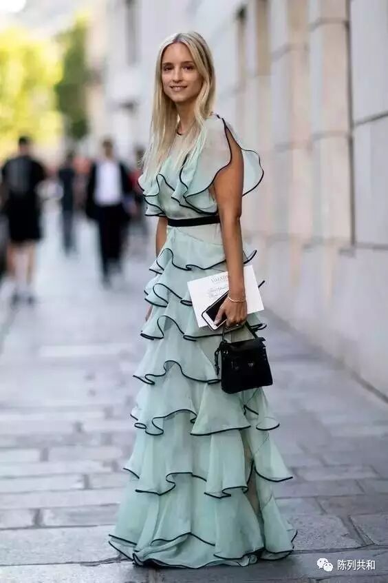 ▼不想显得过于刻意,荷叶边的连衣裙就是你最好的选择,轻盈减龄。