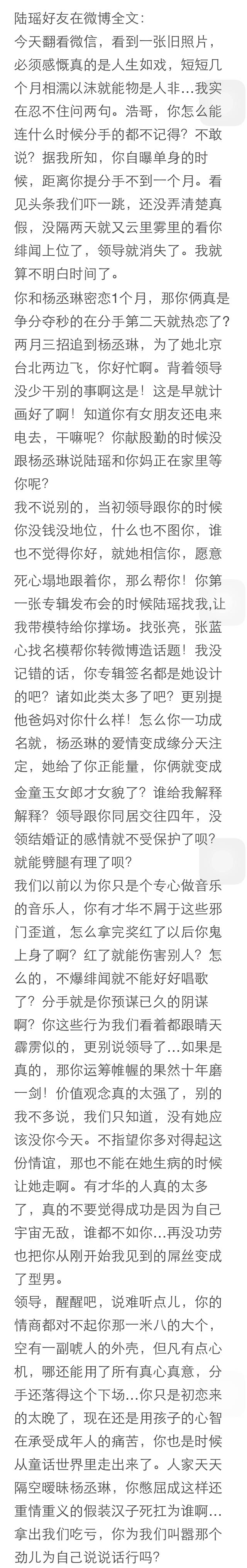 先贴一张李荣浩前女友陆瑶朋友的文。