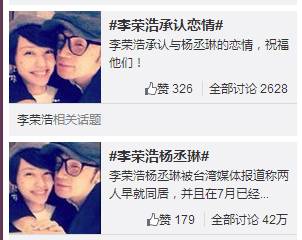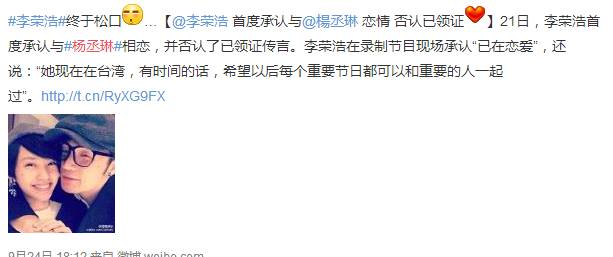 之前还曾被爆出二人已结婚,不过随着此次的公开,李荣浩否认了已结婚,杨丞琳的前男友还真的是事多,这种事情交给本人公布就好了嘛。。