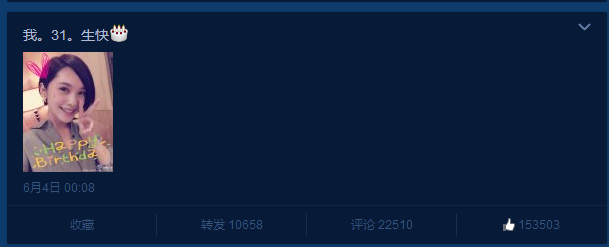 6月4号是杨丞琳31岁生日,李荣浩在零点准时发微博祝福:“生日快乐!”