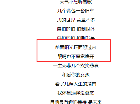 李荣浩的歌曲《自拍》中也有这样的歌词:“前面阳光正面照过来,眼睛也不愿意睁开,一生无非几个欢笑悲哀和爱你的女孩。”