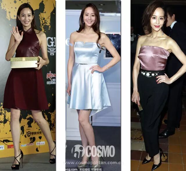 张钧甯也偶尔选择亮面的丝质裙或者皮质拼接联谊区,搭配细跟高跟鞋和干净的首饰点缀,整个人看上去高贵不已。