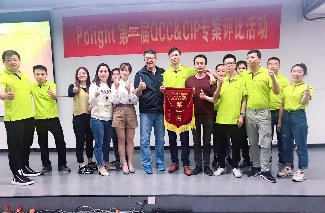2020年1月,Polight第二届QCC改善专案评比活动,徐晓娟作为评委及颁奖主管与获奖团队合影