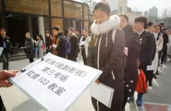 零下2的上海,有人穿着演出的丝绸戏服,有人光脚穿着春夏款皮鞋,还有的人裸露着小腿在寒风中瑟瑟发抖。2月10日8:00,上海最著名的美女、帅哥"集散中心"——上海戏剧学院门前,已经聚集了一大批前来参加2017年本科招生专业考试的学生。