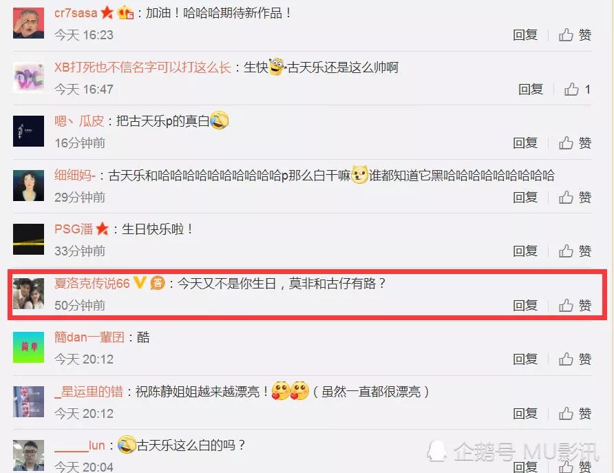 跟帖区除了粉丝对女神的祝福和吐槽把古仔p得如此白净之外,有一眼尖的网友表示:今天又不是你生日,莫非和古仔有路?(照顾一下不懂粤语的朋友,这位网友的意思是在问陈静是不是和古天乐谈恋爱)而另一位跟帖额朋友则补了一句:郎才女貌!古天乐48岁,陈静29岁,这兄妹恋也很般配啊!
