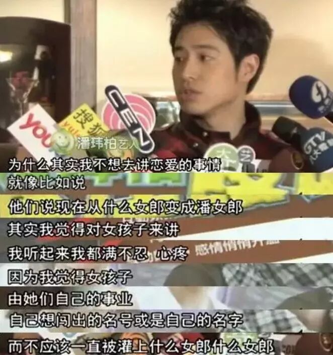 记得很久以前有个报道,说潘玮柏和江语晨在一起了,于是很多报道里面就写着,“潘女郎”。