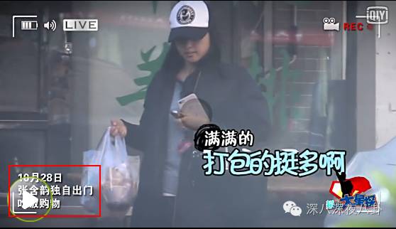 故事是从一大袋外卖开始的。。。。。。10月28号,风行摄影师跟拍到张含韵自个儿去饭店买吃的,咦打包这么多?吃不完吧。。。。难道还有其他人?