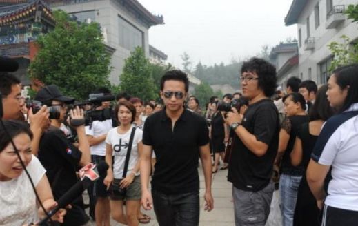 又有一位中年男子对着张国立拍摄,
