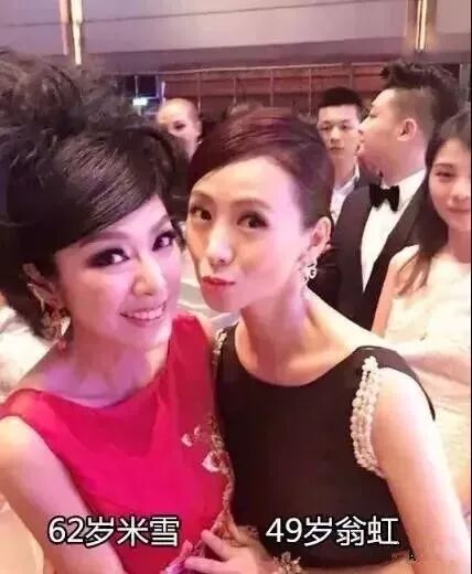 米雪和比自己小13岁的翁虹合照,连被称为“逆生长女王”的翁虹都忍不住惊叹米雪的保养到位:“记得初入行时,米雪曾经做我的妈咪,想不到几十年后她完全没有变过,好像吃了防腐剂一样,提醒我们做后辈的要注重保养。”