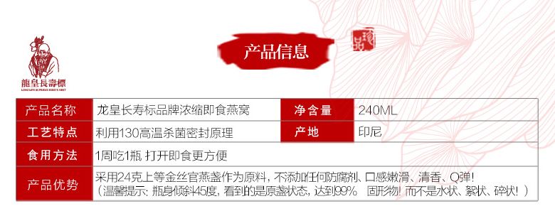 去年小西为各位听众老爷们找来了“龙皇长寿标”即食燕窝的礼盒。