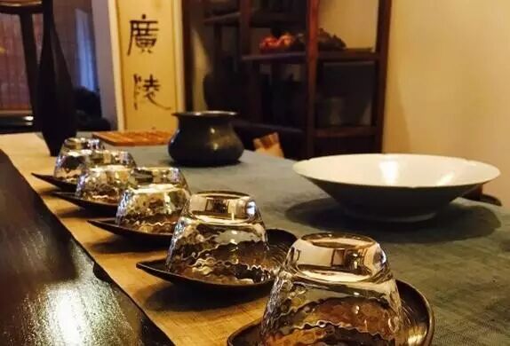店名挺有意境,应该是取敲冰煮茗之意,闹中取静的位置,小小门面一不留神会走过。装修很古朴,木质柜子上摆满了各种茶具,还有竹帘、古琴等等,书架错落有致。