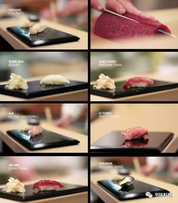 在数寄屋桥次郎里享用小野二郎亲手制作的寿司,行云流水般的上菜,就像身处一场美妙的音乐会。第一乐章是经典菜色,包括比目鱼、墨乌贼、竹荚鱼、鲔鱼赤身、鲔鱼中腹、鲔鱼大腹、斑鰶……新鲜的刺身唤醒味觉,使你胃口大开。