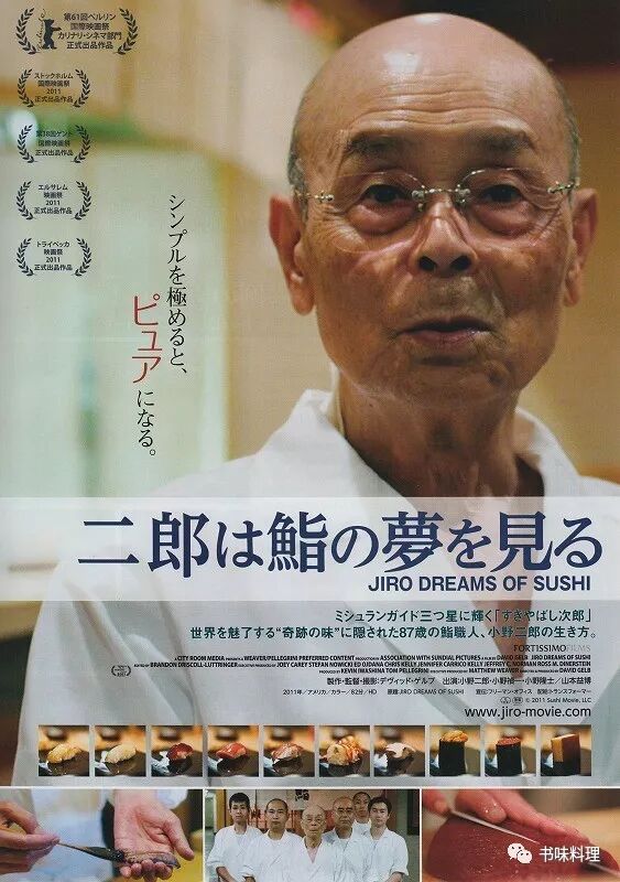 米其林的三星餐厅,意味着此处的美味,值得你专程造访该国。数寄屋桥次郎是米其林三星餐厅中最独特的一个——位于东京银座一栋大厦的地下层,只有十个座位,店内没有洗手间,只售握寿司,只接受预订。食客们在这里每人至少三万日元,吃二十个寿司。这样算下来,每个寿司售价差不多18个美金,人民币120元,好贵。但还是络绎不绝,预订有数月之久。有这么好吃?大卫·贾柏百思不解,就拍了这部纪录电影——《寿司之神》( Jiro Dreame of Sushi )。