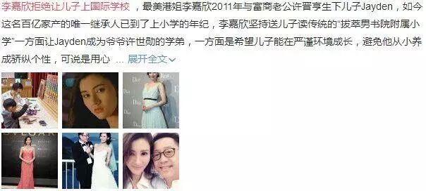 李嘉欣却拒绝让儿子上国际学校,而是让自己的儿子上了拔萃男书院附属小学,李嘉欣就拒绝让儿子上国际学校正式做了回应,其一,就是为了让自己的儿子与爷爷成为校友,让儿子成为爷爷许世勋的学弟,而另一方面的原因,也是最主要的原因就是希望儿子能在严谨环境成长,避免他从小养成骄纵个性,可说是用心良苦。