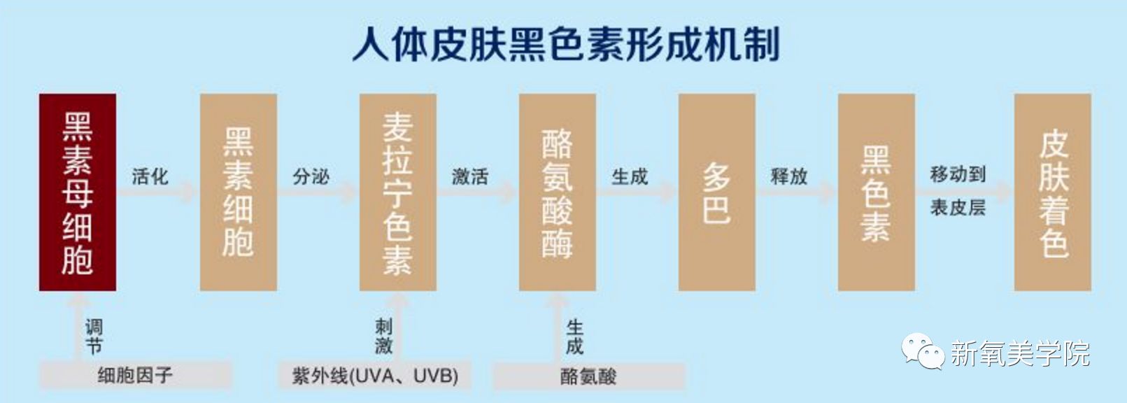 在黑色素的形成过程中,起着关键作用的是酪氨酸酶的活性,它决定了黑色素生成的速度,也就决定了后天每个人的肤色变化。所以抑制络氨酸酶的活性可以美白。