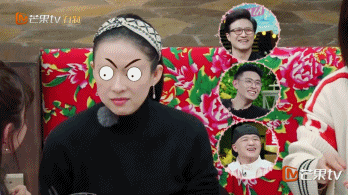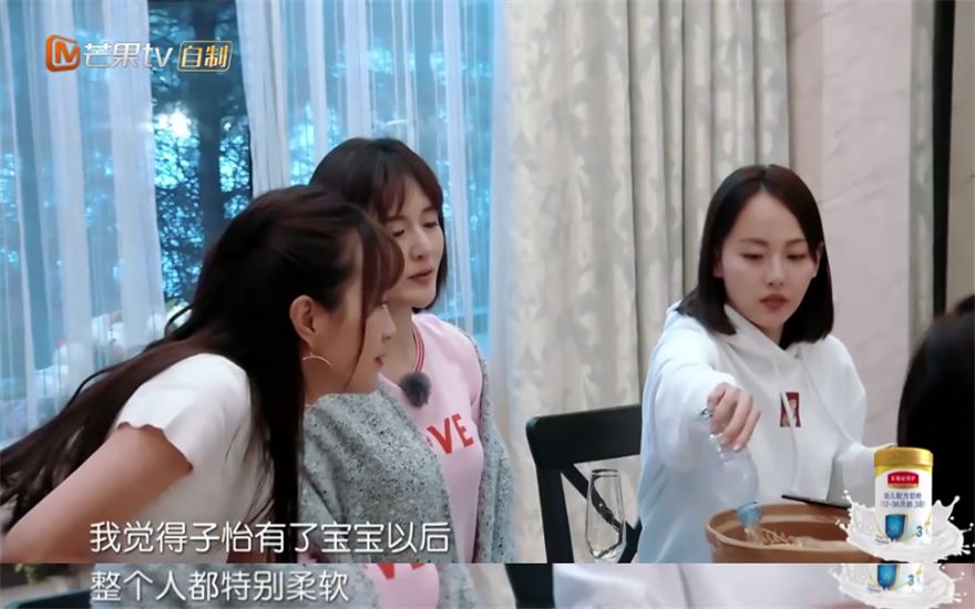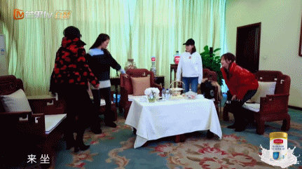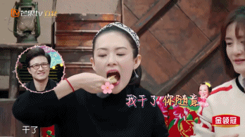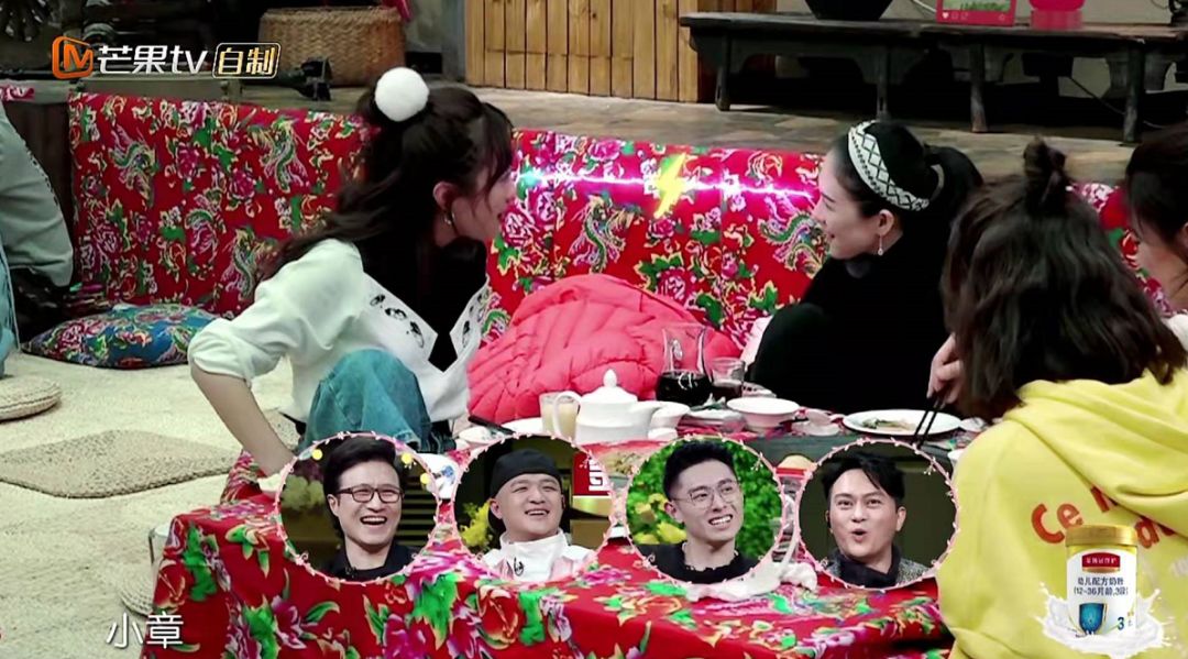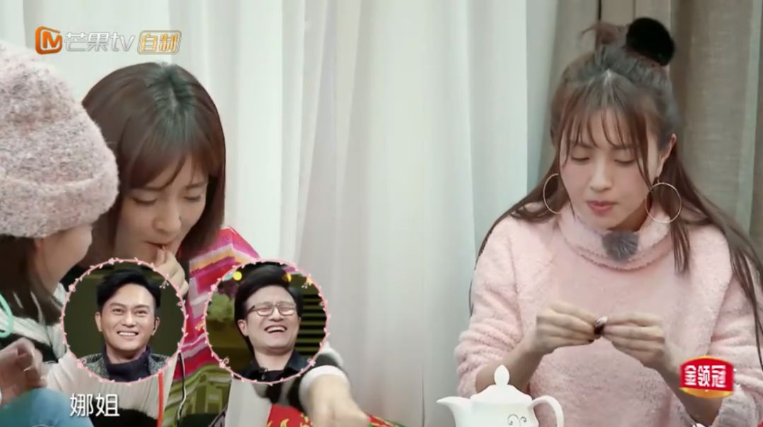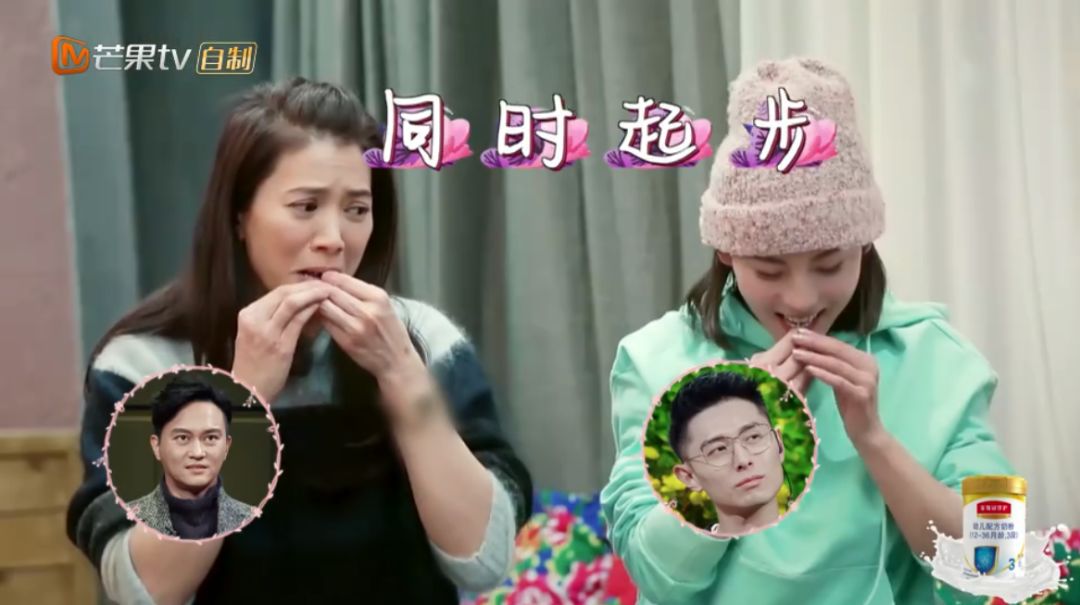 妻子们比赛吃瓜子,两两分组吃得满脸拧巴,唯独章子怡做裁判。