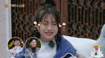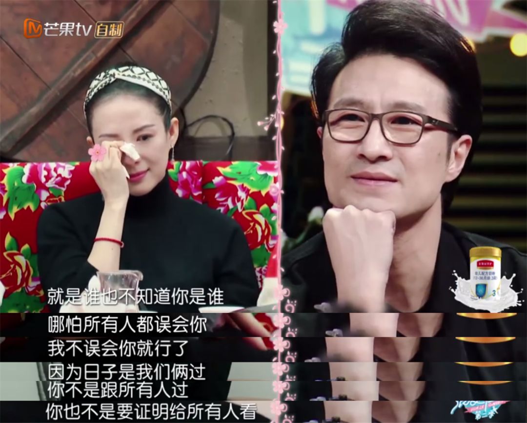 包文婧被老公感动,哭得满脸五官扭在一起。