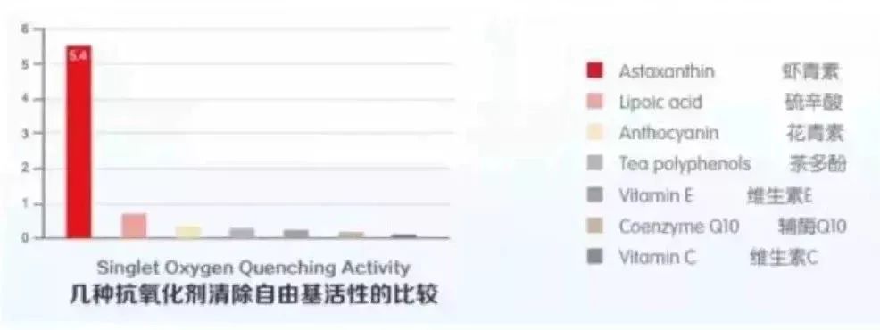 虾青素被称作自然界最强的「抗氧化之王」,这个成分的抗氧化能力,是维生素E的550倍,辅酶Q10的150倍 。4