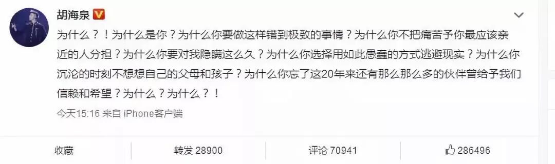 却很少有人注意到,羽泉组合的另一成员胡海泉,也在微博上回应了这一事件。