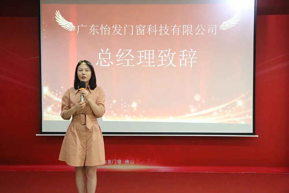 随后,怡发门窗总经理陈颖通过案例分享从品质意识、强化技术、人员考核、质量管理四个维度讲解了品质的重要性,她表示,希望在座的每一位怡发人将高品质深入人心,狠抓品质,实现从普通到优秀,从优秀到卓越的突破。