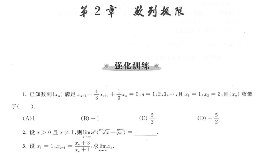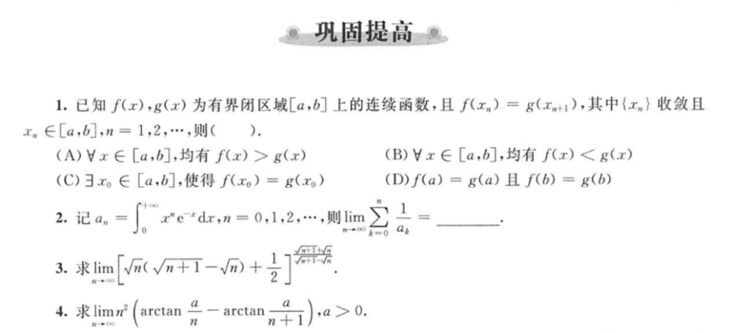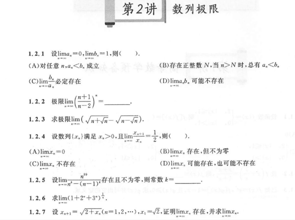 其次是张宇老师的强化36讲,适用于暑期强化阶段使用。36讲包含高数18讲,线代9讲,概率论9讲。这三本强化教材也有知识结构框架图,同时对定理概念进行简单的回顾,其次是大量的例题与配套的解析。实话实说这些例题有一定的难度,张宇老师把针对同一类考题总结出不同的解题方法,比如针对数列极限的存在性与极限问题上,总结出了包括归结原则、直接计算、定义法(“先斩后奏”)、单调有界准则等四种方法,并给每种方法都配了相关的例题,帮助大家去理解这些方法是怎么样去解决问题的。因此,如果我们在考场上真正的遇到了求数列极限的问题上,我们只需要去思考这四种方法哪种适合用于该道题即可,可谓“对号入座”。