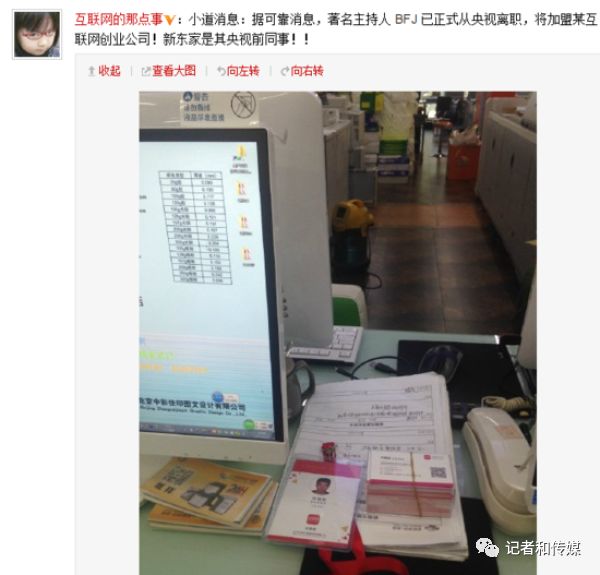7月28日,知名博主“互联网的那点事”发微博称:“小道消息:据可靠消息,著名主持人 BFJ 已正式从央视离职,将加盟某互联网创业公司!新东家是其央视前同事!!”