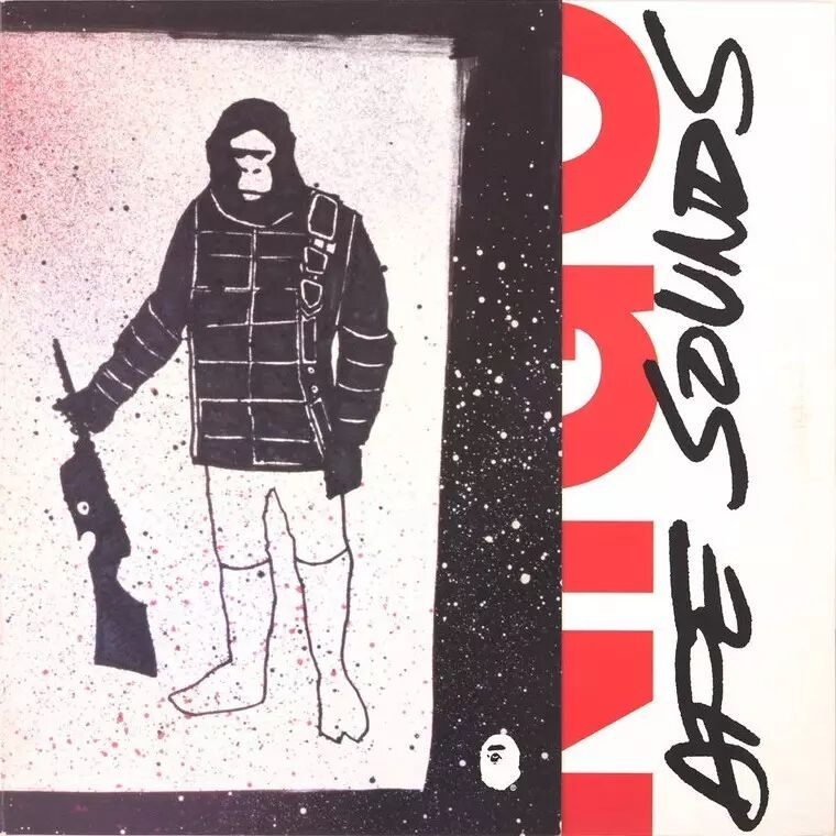 FUTURA 为 NIGO® 第一张唱片《Ape Sounds》创作的封面,出现猿人形象和他的手写字体(图片来源:Google)